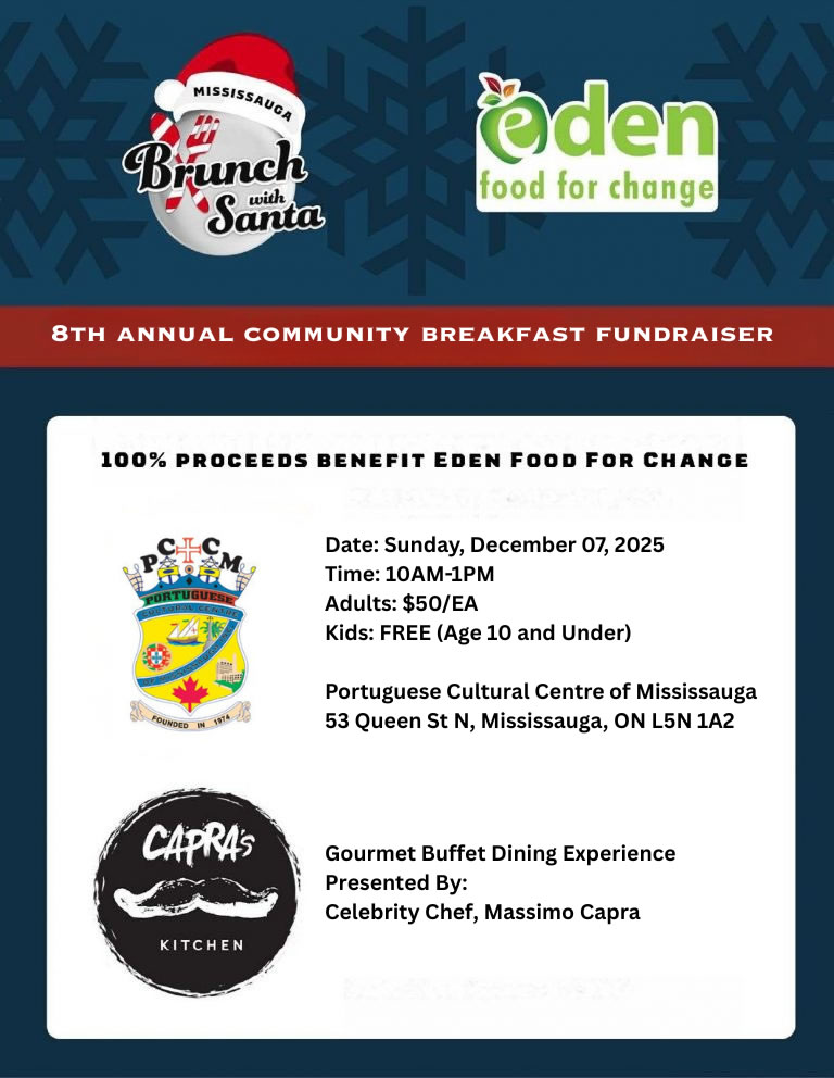 If you can, please register for the 7th annual Brunch With Santa fundraiser in benefit of the local Mississauga Food Bank, Eden Food For Change.